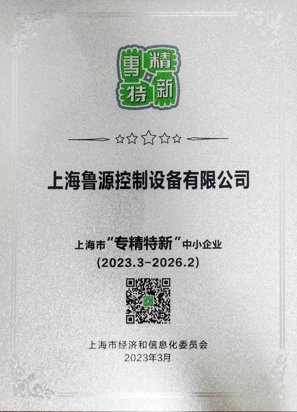 热烈祝贺上海鲁源控制设备有限公司通过上海市“专精特新”中小企业认定!“专精特新”中小企业是上海市经济和信息化委