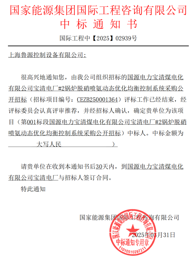 国源宝清电厂#2锅炉脱硝喷氨动态优化均衡控制系统成功中标