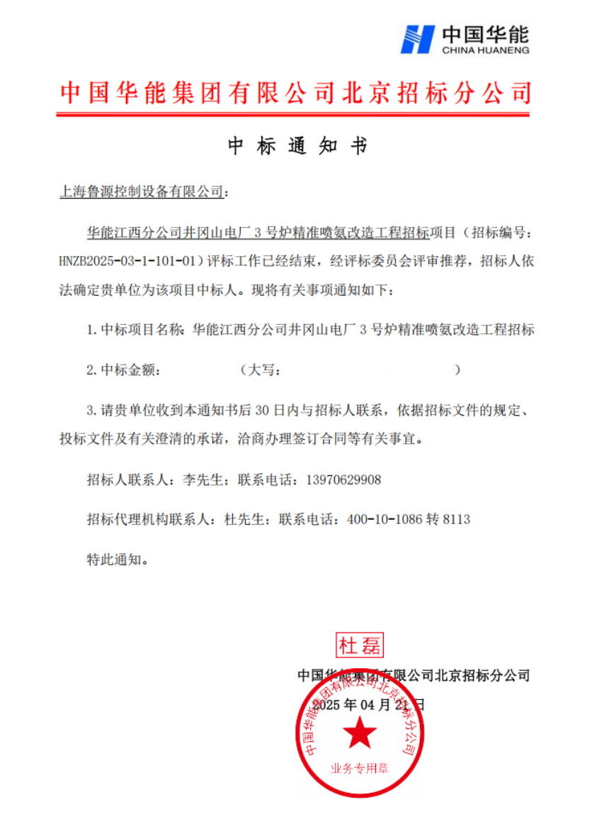 华能江西分公司井冈山电厂3号炉精准喷氨改造工程招标项目成功中标